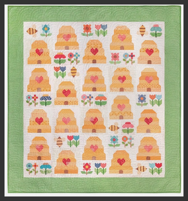 Es hora de retomar este Quilt que ya dejé el año pasado a punto de terminar: esta es la adaptación de mi Bee Keepers Quilt de Lori Holt, este Quilt aparece en el libro Farm Girl Vintage 2. Y realmente apunta a uno de mis bichitos de jardín favorito: las abejas. Además de ello lo he modificado agregándole una de mis flores favoritas para los Patrones de Primavera y Verano que son los Girasoles, el block de aplicación pertenece a Autumn Love de la misma autora.