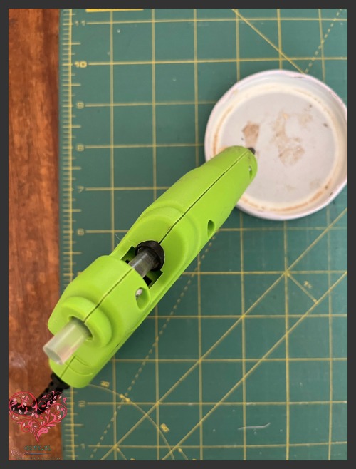 Ahora es momento de juntar las dos partes de nuestro spooky needle minder. Usaremos una pistola de silicona caliente para asegurarnos de que queden bien unidas. Este paso es clave para que tu needle minder sea resistente y funcional. ¡Manos a la obra! 🦇👻