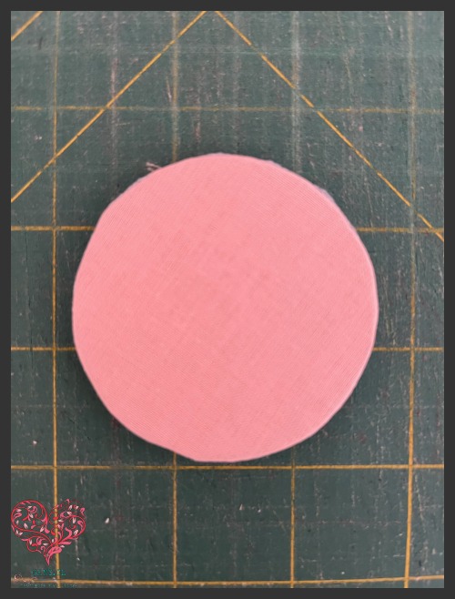 El círculo de carton de 2 1/4 inch y el circulo de tela rosa de 3″